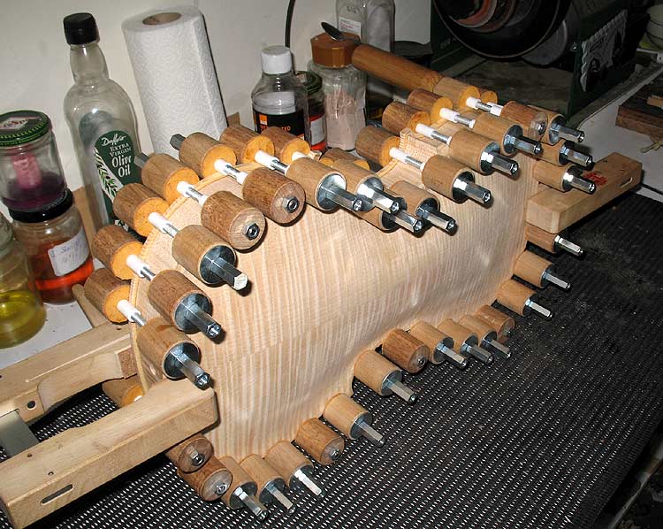 The box closed on another instrument - probably never to be opened for many years. Top plates are glued with very thin hide glue to facilitiate opening.