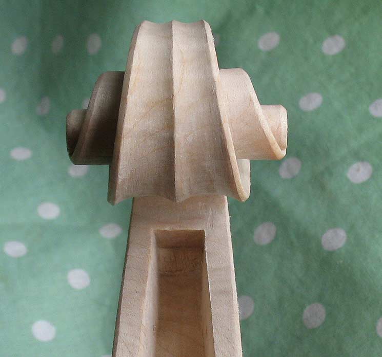 A new Da Salo Viola scroll - more or less finished, the odd tweak here or there and the pegbox chamfers to complete.