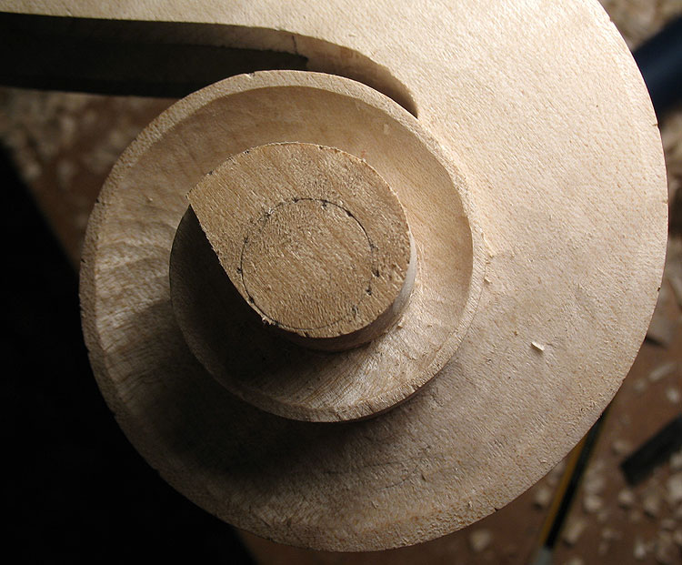 The Guagagnini cello scroll - I deepen the faces of the volute partially as I progress in towards the final cuts.